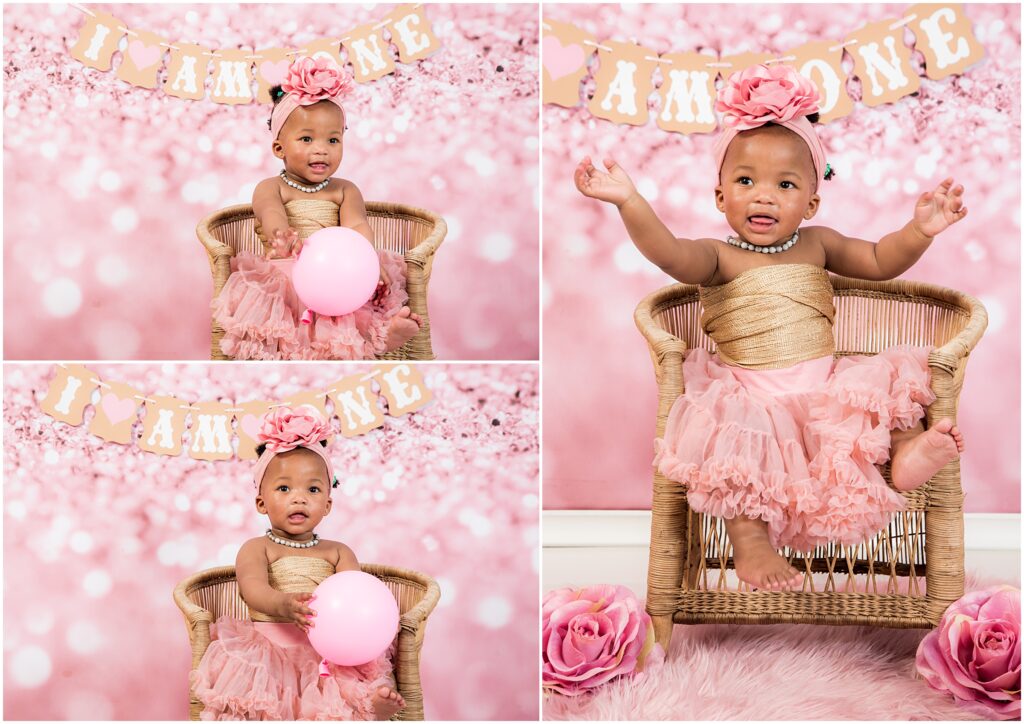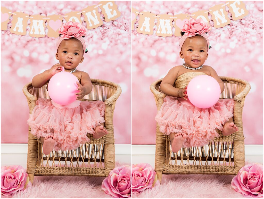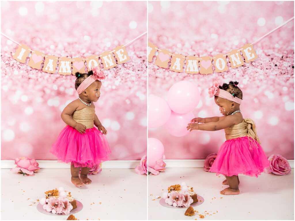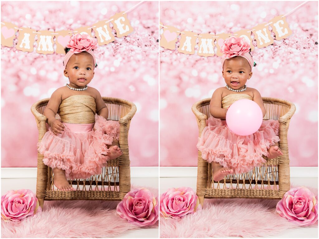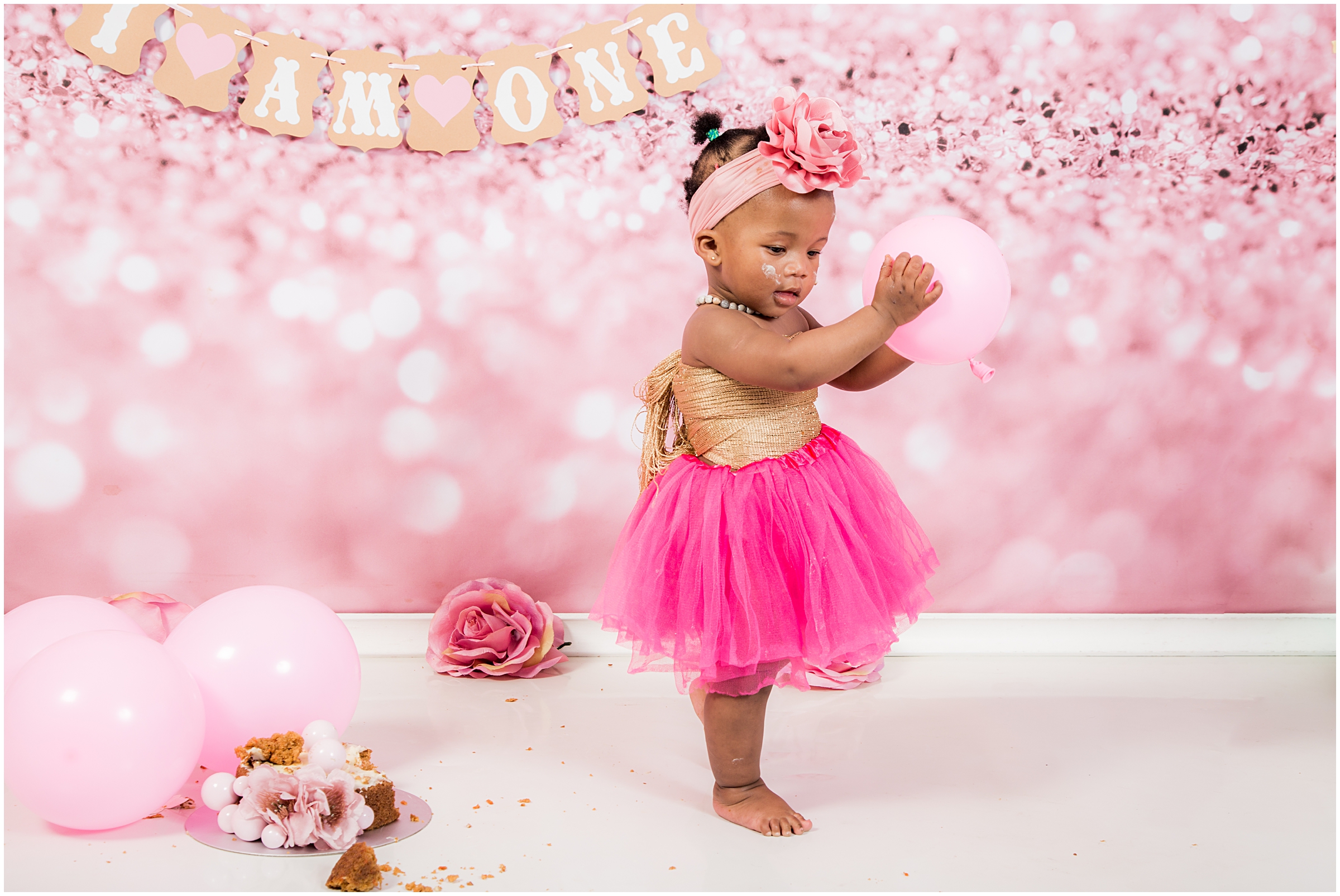 A memorable, glittery and shimmery pink themed cake smash was perfect one year old Iyazi, who has the most sparkling personality. Not to mention, the endless energy that she unleashed in my studio, adding an extra dose of cuteness. She looked so darling in her oversized flower headband. Nothing brings joy quite like cake and smiles. “May you shine wherever you go Iyazi!”