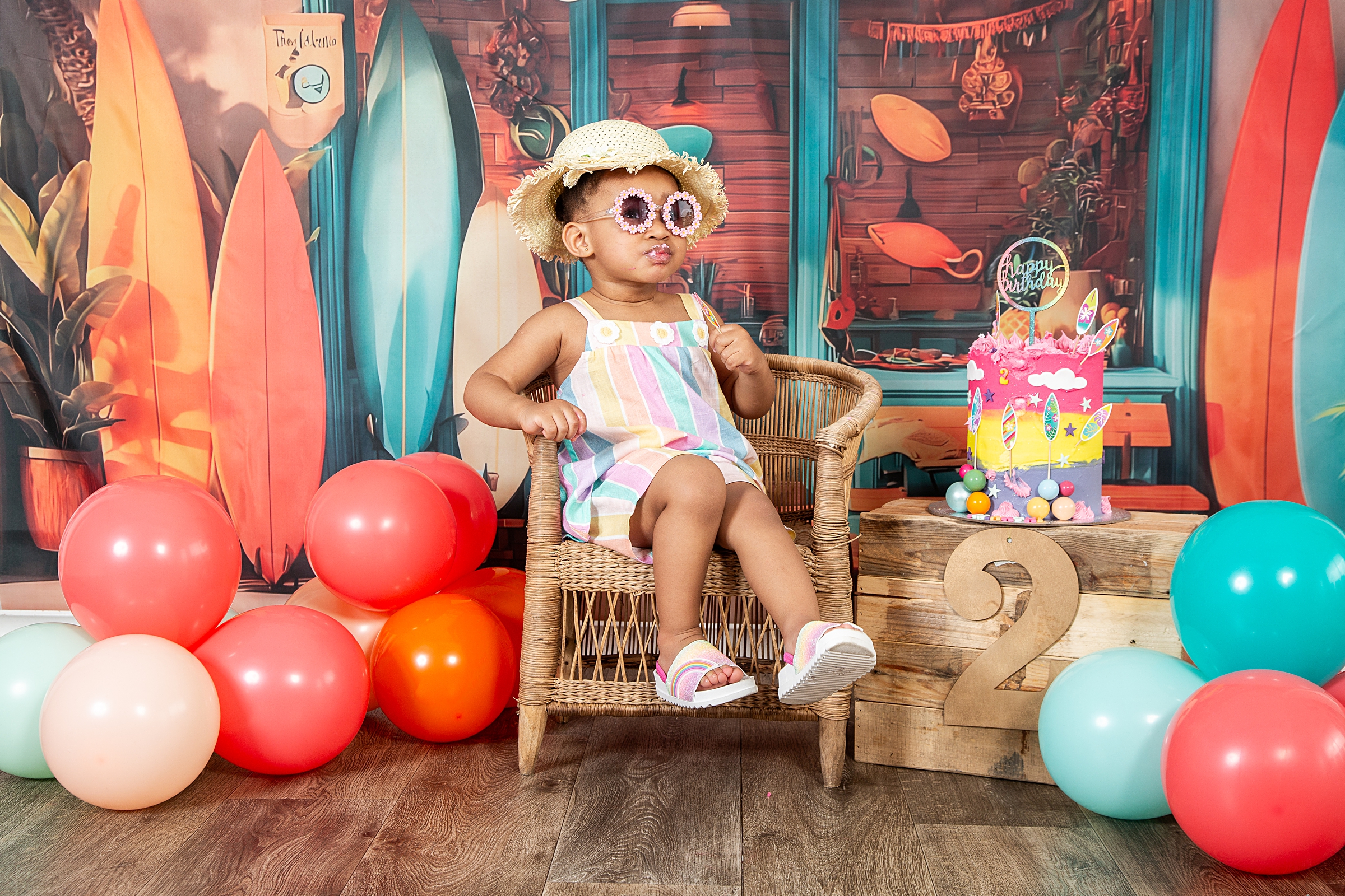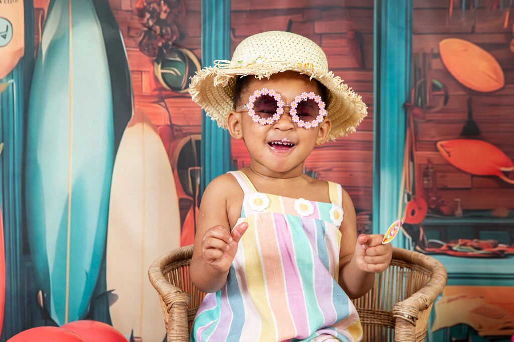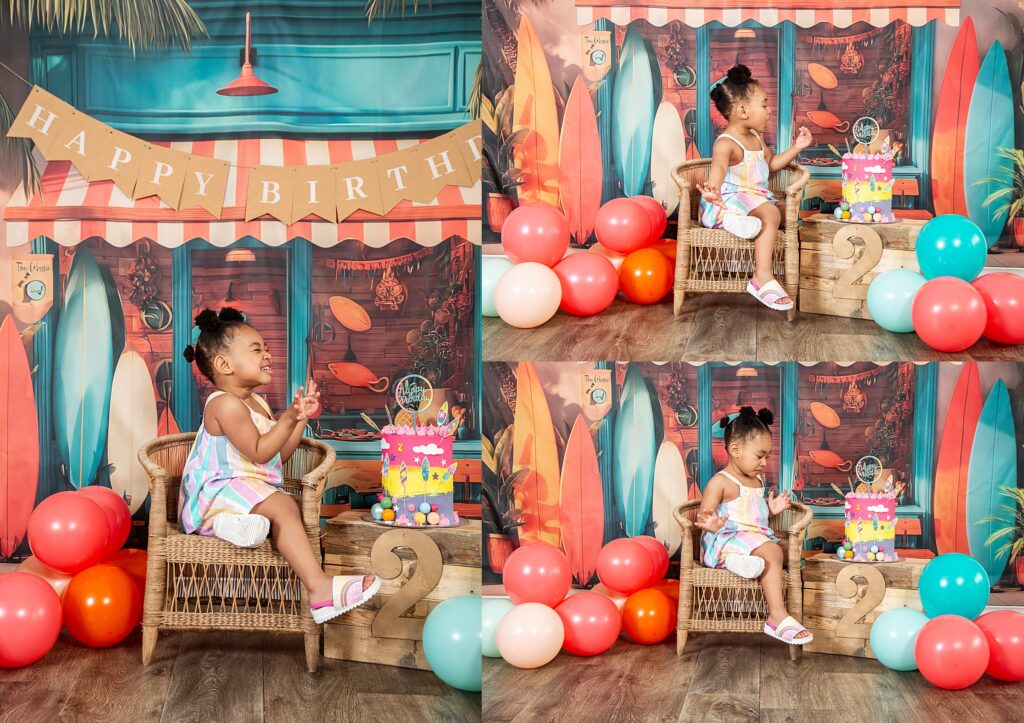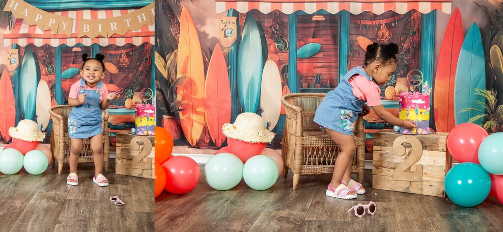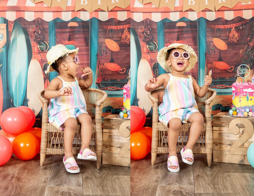 Catch a wave of fun: Surf-themed 2nd birthday celebration. Hang ten and get ready for the summer vibes and a beachy adventure with our adorable little surfer girl, Imi. She looked utterly adorable in her cute outfits, summer hat and cool shades. Moreover, she couldn’t resist sticking her fingers into her impressive birthday cake and enjoying the delicious flavours, which is evident in her joyful expressions. It was lovely to share the celebration with her big sister Andani. Happy birthday little princess. May your days be bright and magical.
