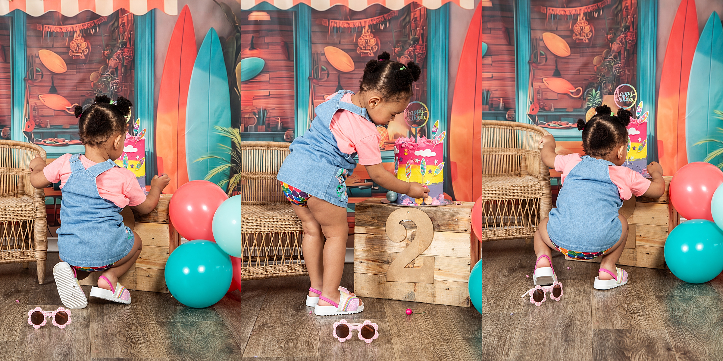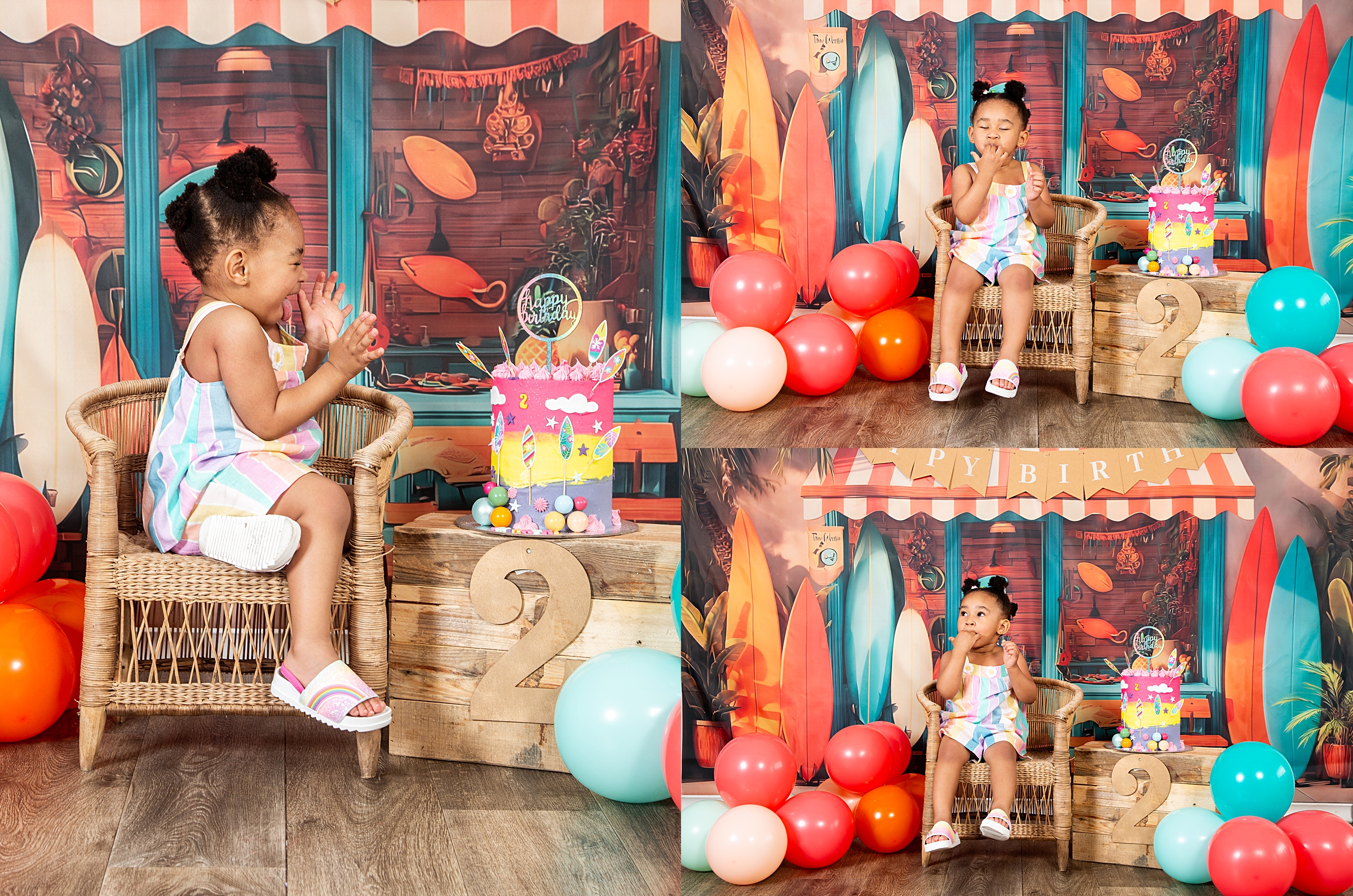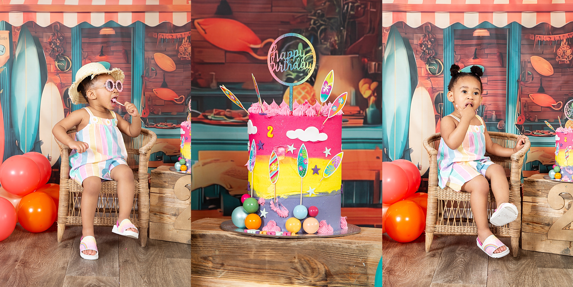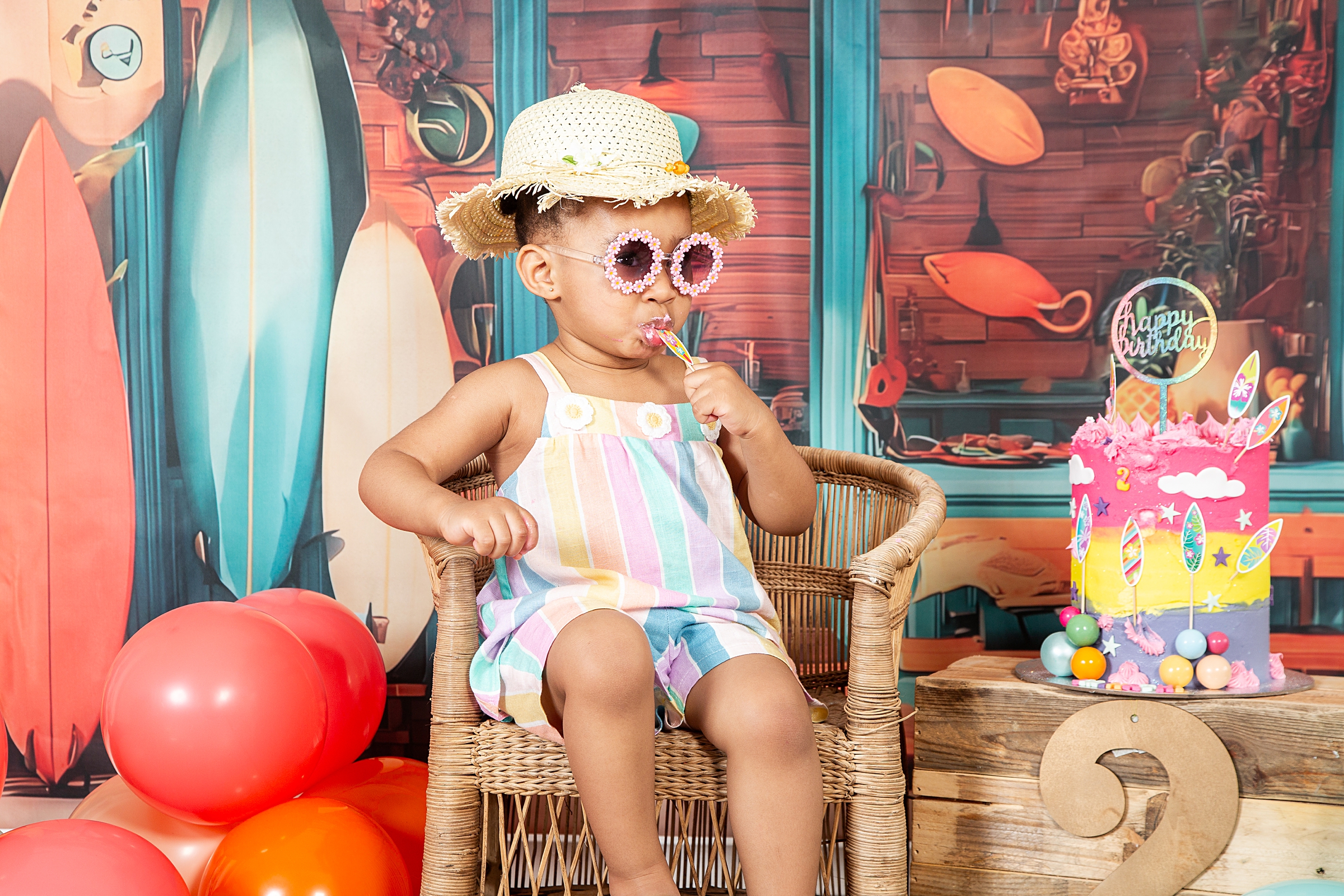 Catch a wave of fun: Surf-themed 2nd birthday celebration. Hang ten and get ready for the summer vibes and a beachy adventure with our adorable little surfer girl, Imi. She looked utterly adorable in her cute outfits, summer hat and cool shades. Moreover, she couldn’t resist sticking her fingers into her impressive birthday cake and enjoying the delicious flavours, which is evident in her joyful expressions. It was lovely to share the celebration with her big sister Andani. Happy birthday little princess. May your days be bright and magical.