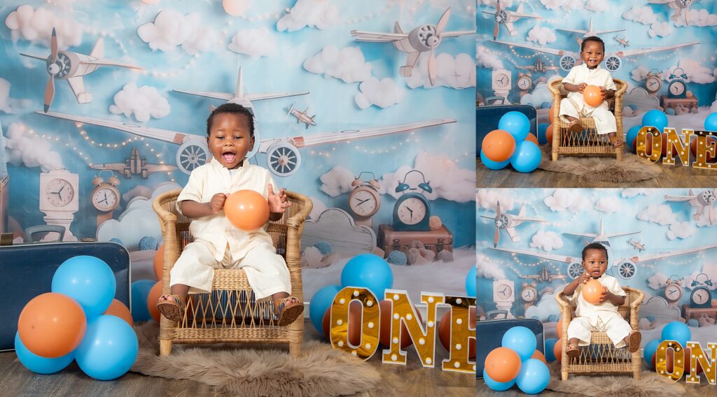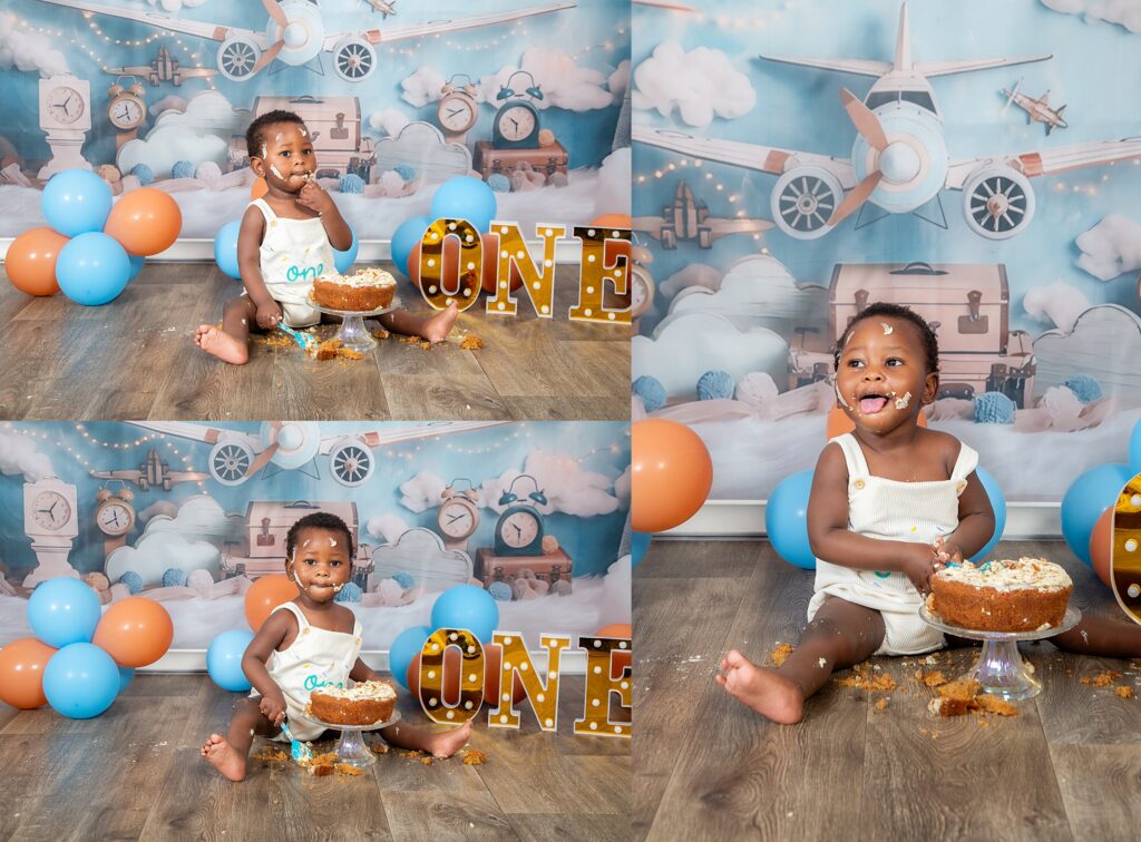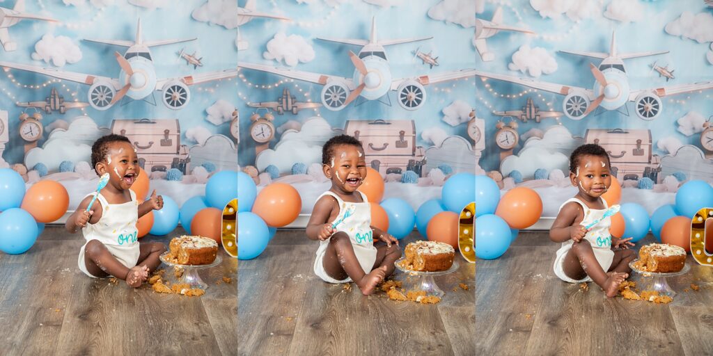 A flight of fun cake smash session was the perfect set up for this little aviator. One year old Lidinga buckled up and was ready for take off. He enjoyed every minute of tucking into his cake, with so much enthusiasm and glee. He entertained us with his infectious laughter. Happy birthday Captain Dinga.