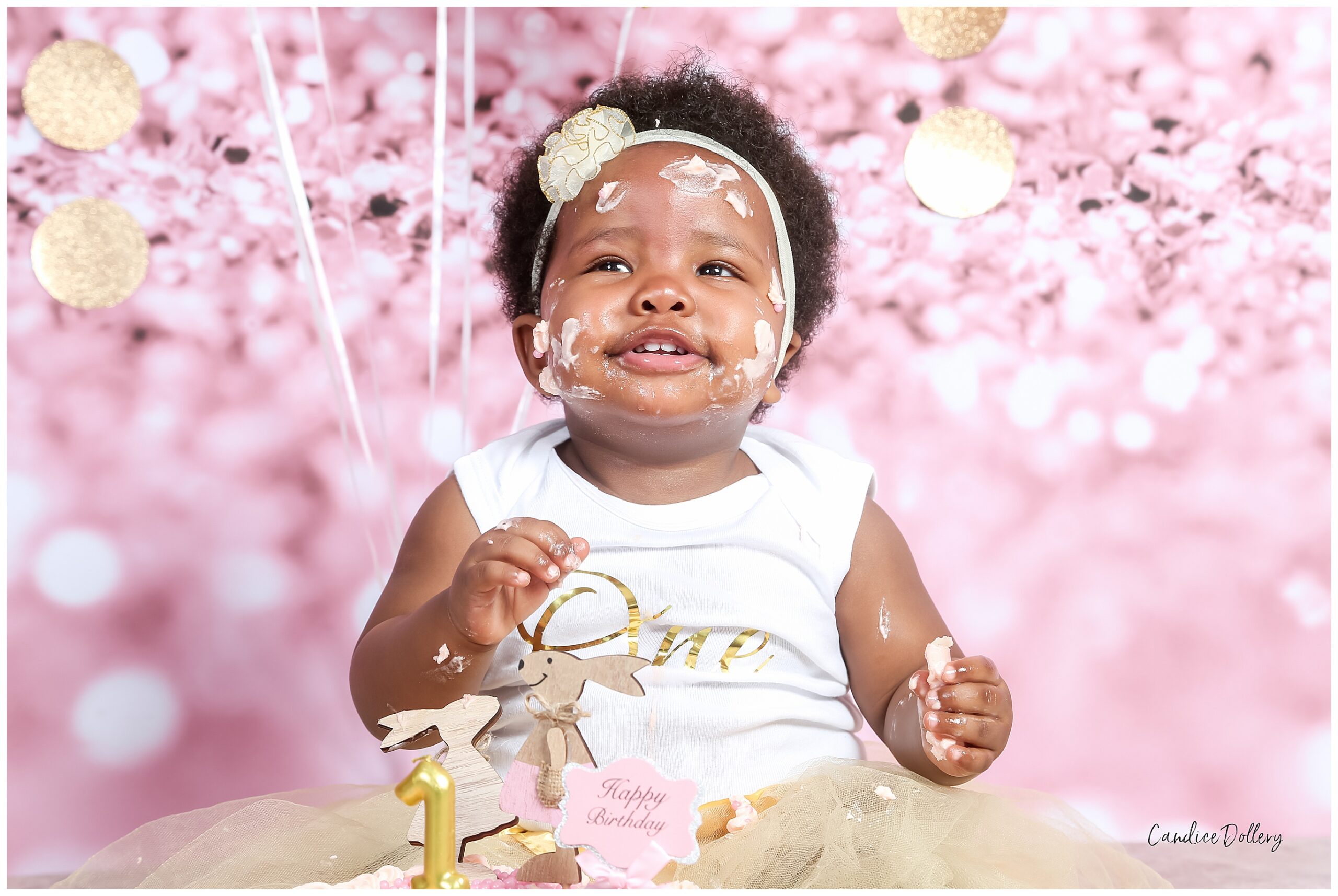 First birthday cake smash milestone with baby Joy. A year ago, this gorgeous baby girl changed her parents’ lives forever. Today they can reflect on a year of love, growth and messy moments. Besides, Joy is already a cake connoisseur, because her mommy is a very talented baker and made her beautiful yummy birthday cake !