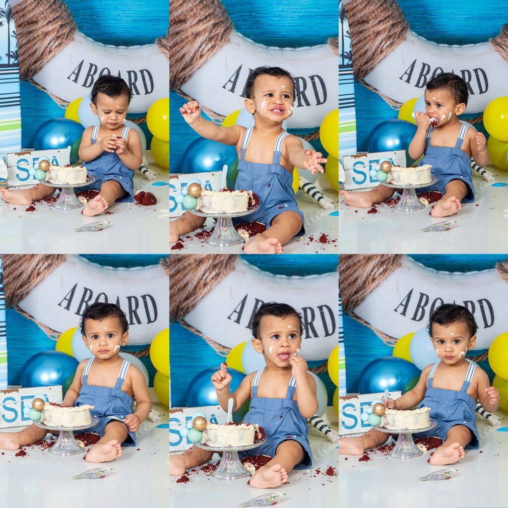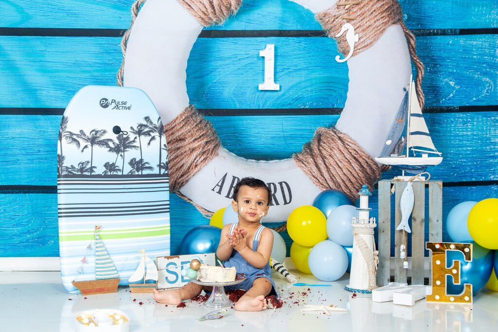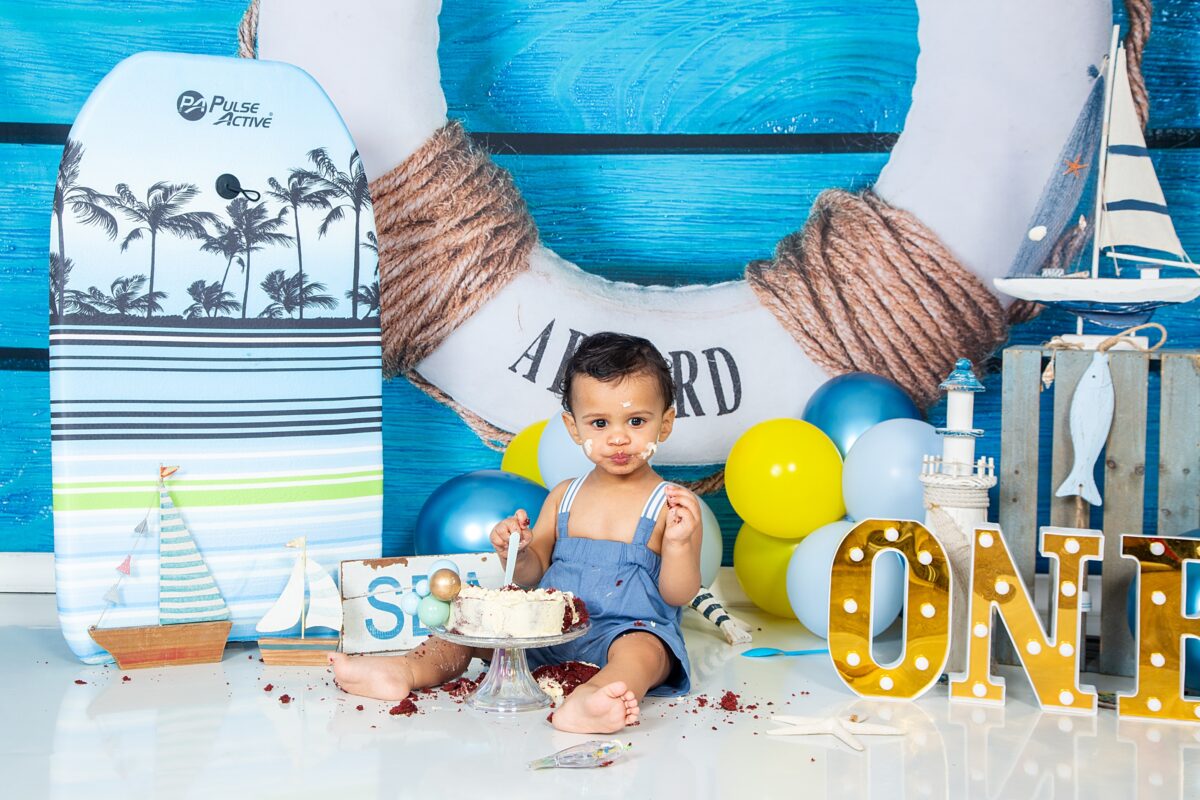 July 17, 2025 Candice Dollery 1st birthday photoshoot East London, cake smash adventure, cake smash photography, East London cake smash photographer, East London photographer Candice Dollery, East London Studio photographer, family photographer East London, kids birthday photography East London, nautical themed cake smash, smash the cake photography 1st Cake Smash