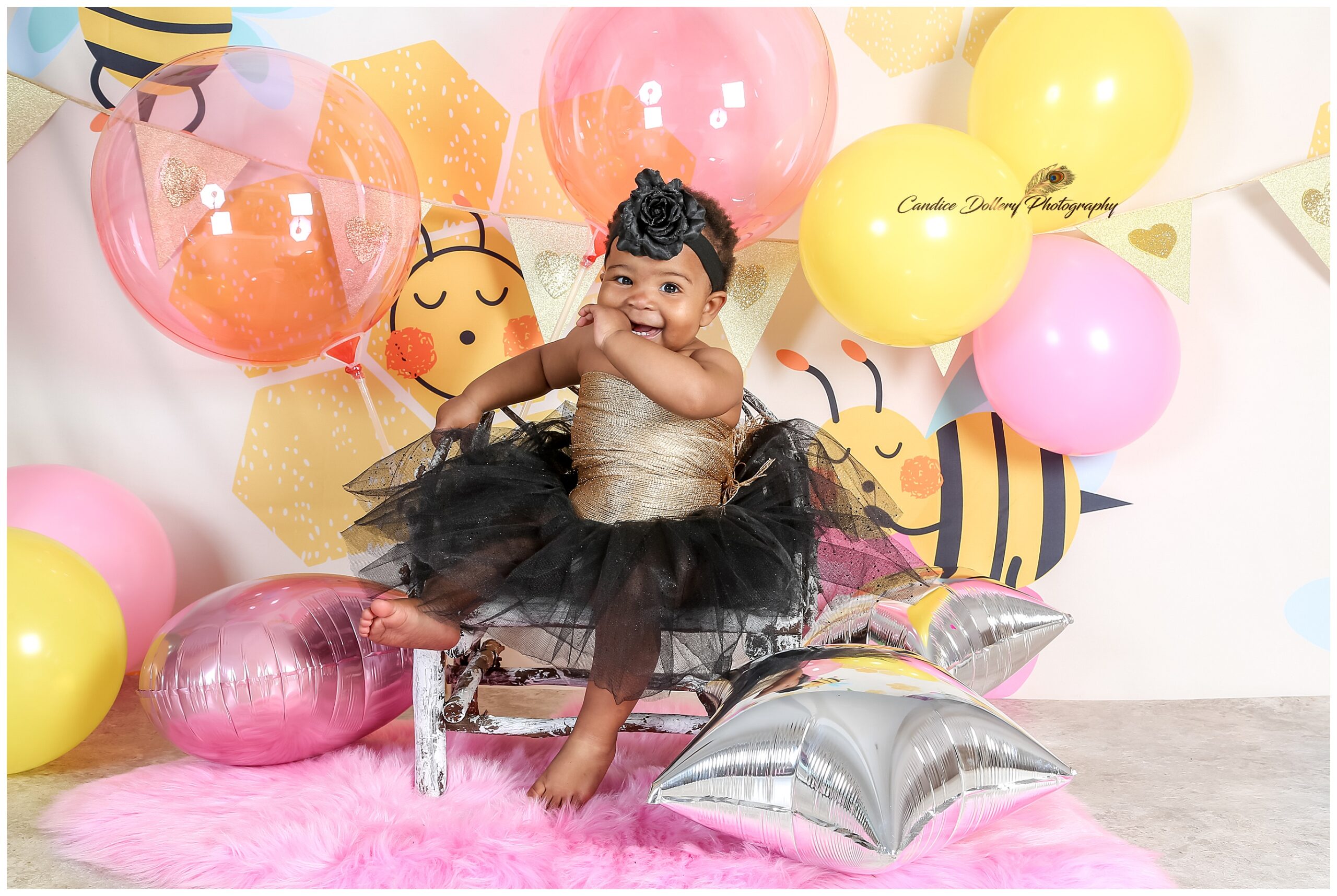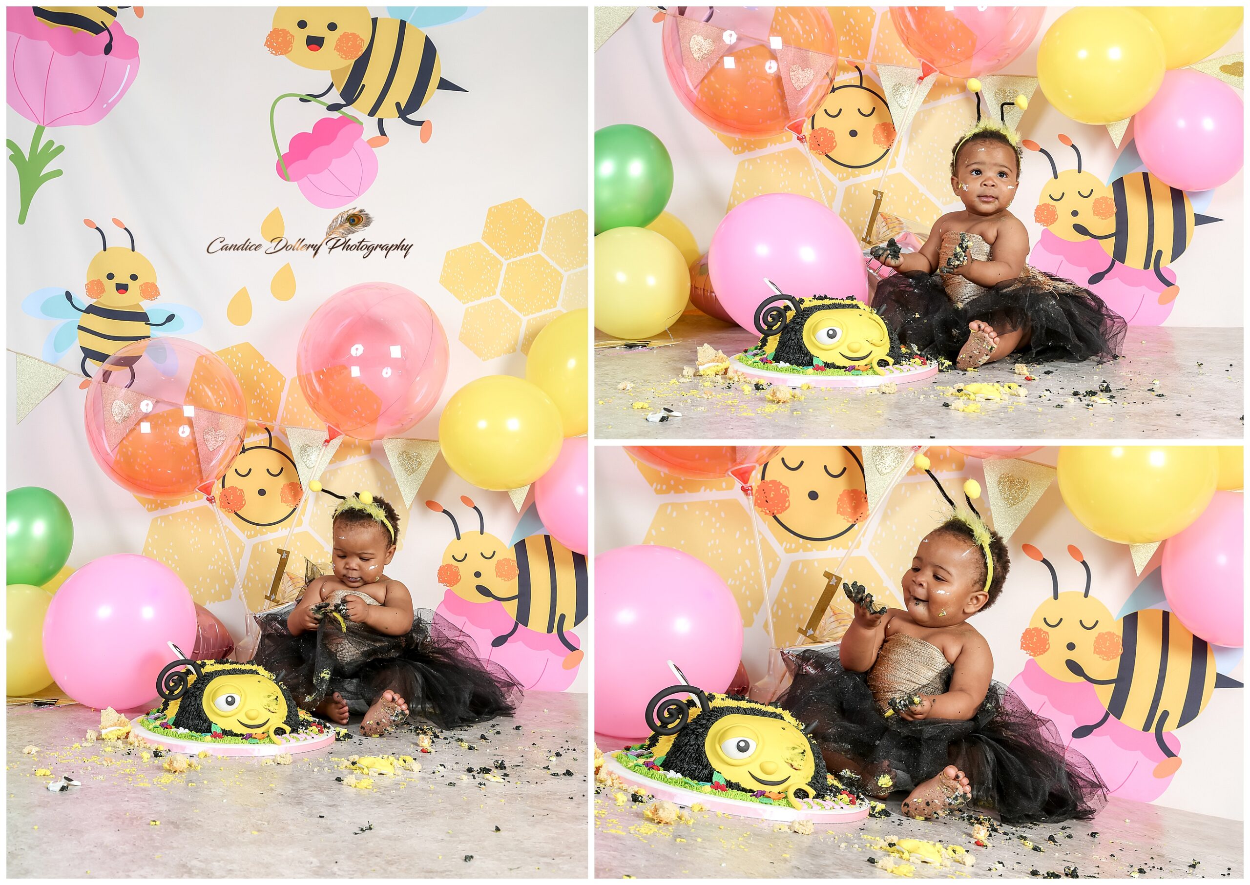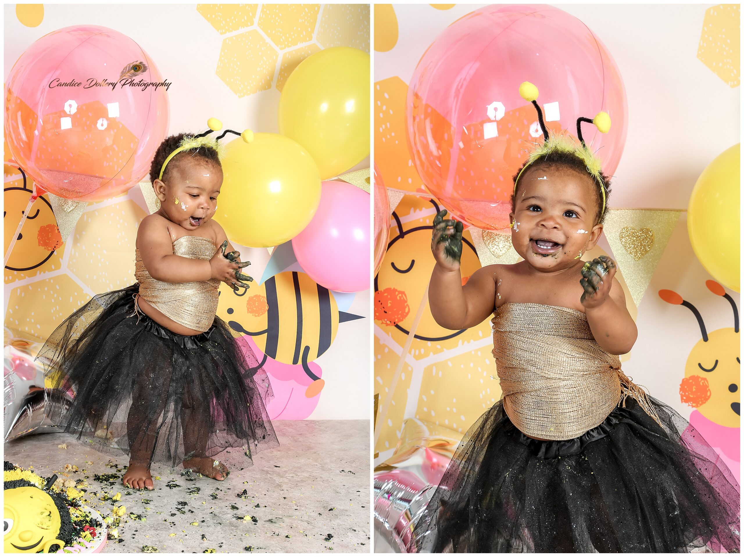 Simi showed us how much fun it is to “bee” ONE. The bee themed cake smash setup was perfect !