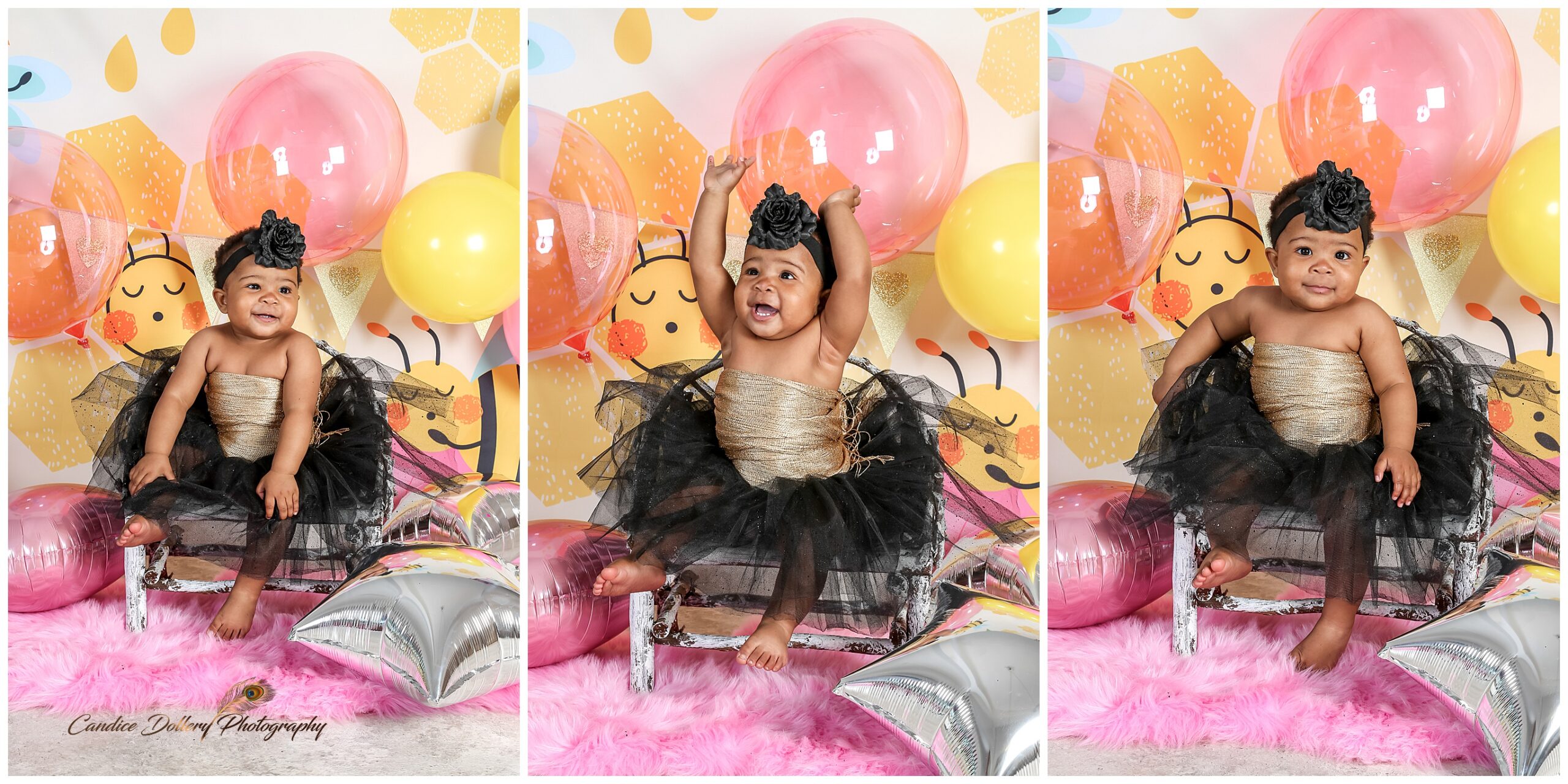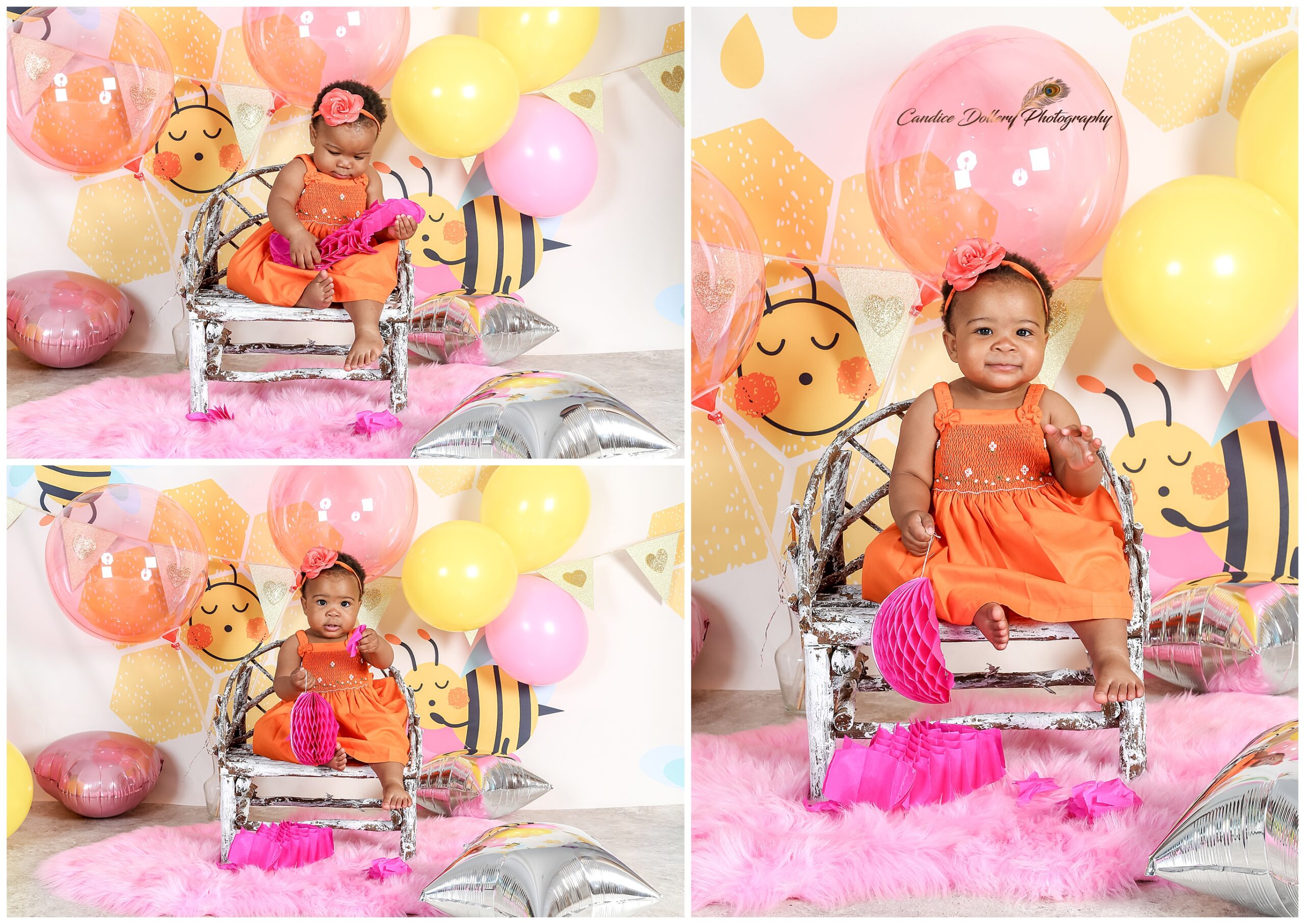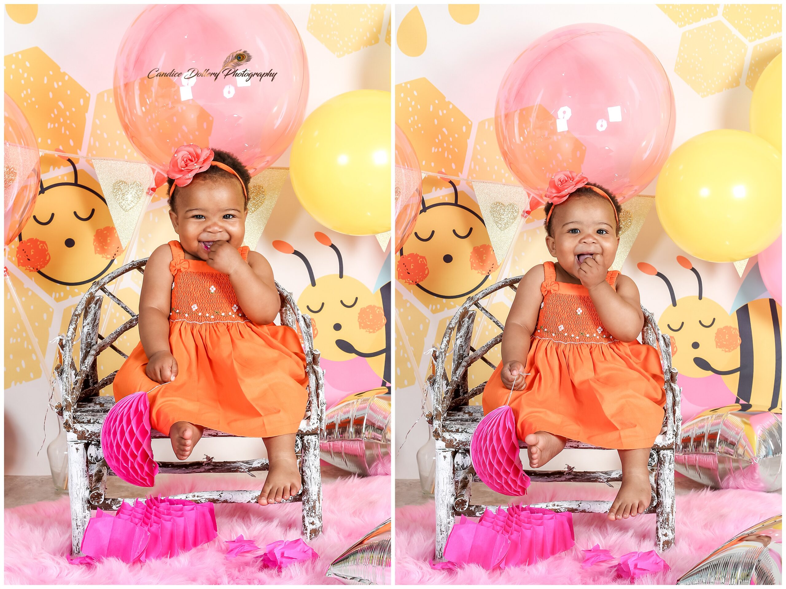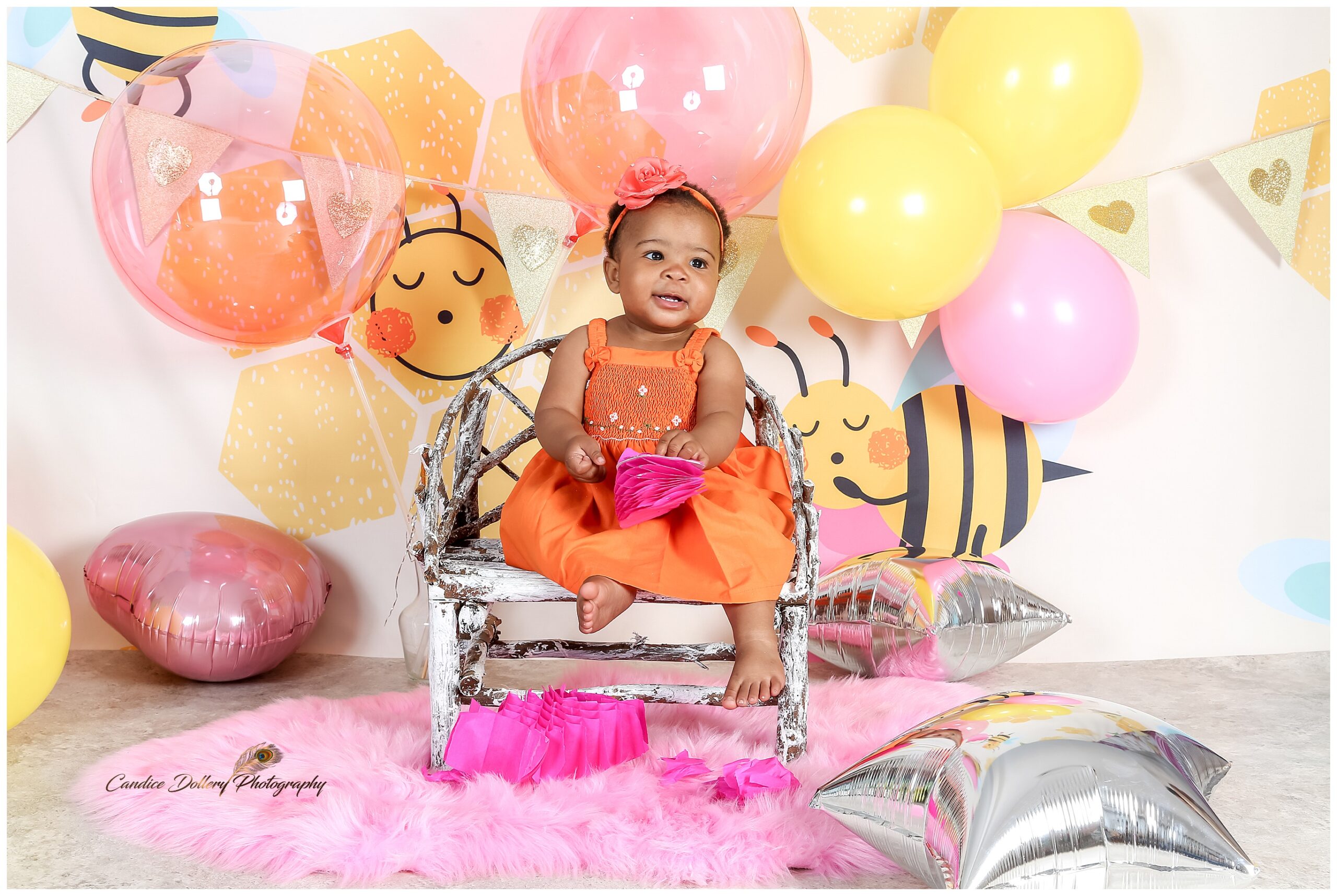 Simi showed us how much fun it is to “bee” ONE. The bee themed cake smash setup was perfect !