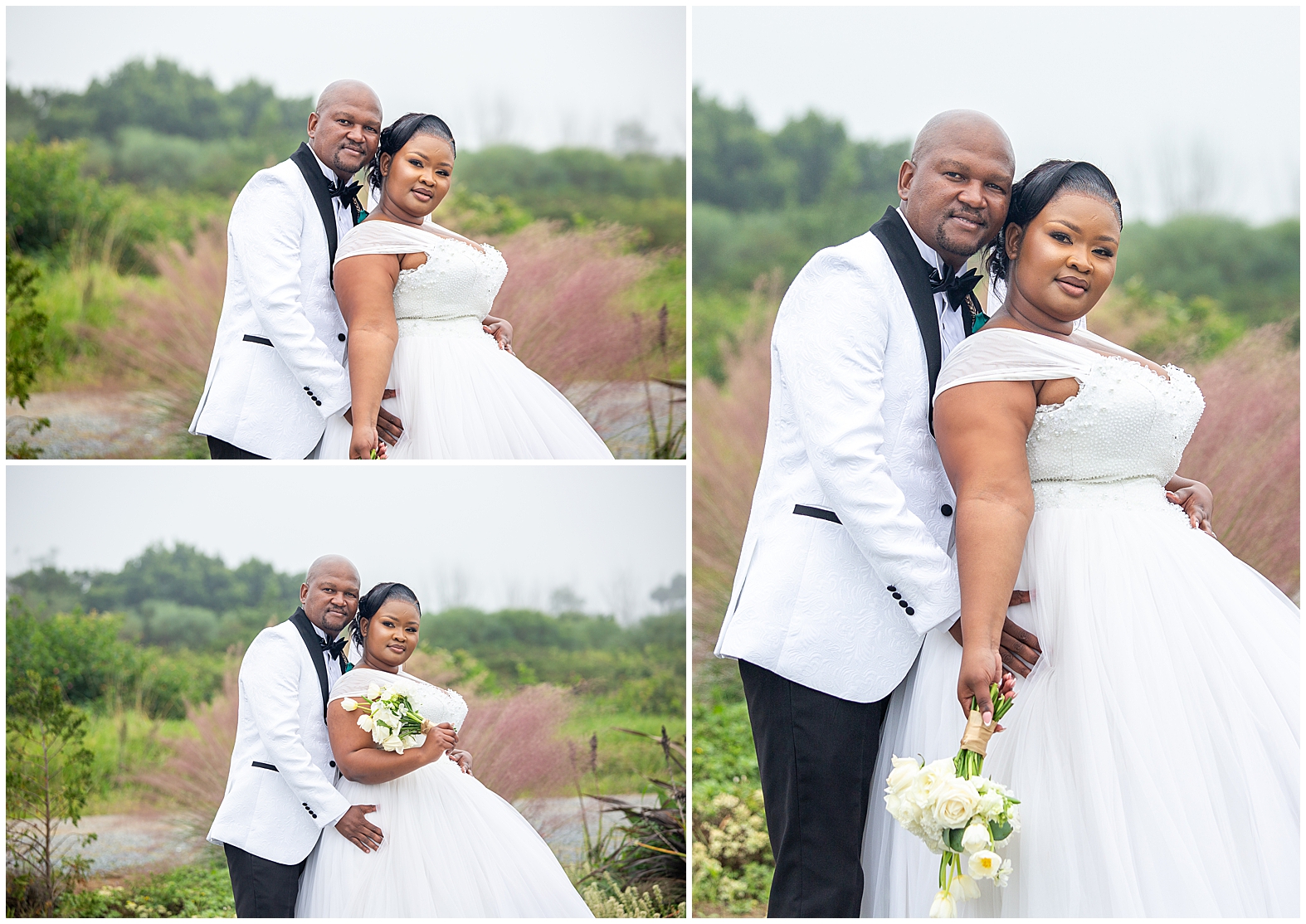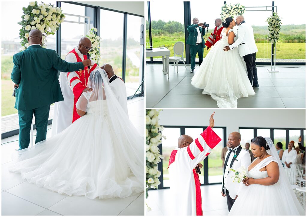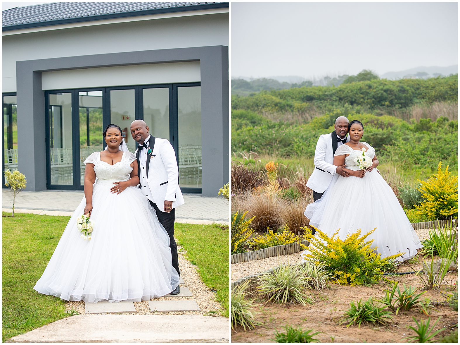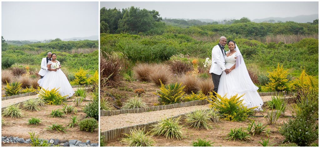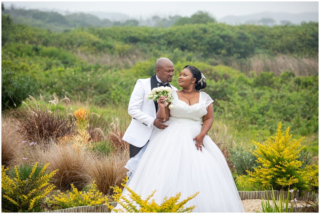 A luxurious matrimonial experience at The Amber. Comagu and Yonela tied the knot at The Amber Luxury Venue, situated on a farm near the coastal resort town of Kidd’s Beach in the Eastern Cape. The beautiful couple held their ceremony in the Infinity Chapel, which has an abundance of natural lighting and views of the surrounding indigenous landscape. There were so many endearing touches, especially the wedding vows. They were handwritten in bespoke vow cards, expressing their love and devotion to one another. As soon as the ceremony ended, it began to drizzle softly with God’s Blessings and the air turned into a crispy coolness. Nevertheless, the undeterred bridal couple embraced the weather conditions with enthusiasm. Furthermore, the pristine landscaped gardens, with tones of autumn hues, created a beautiful contrast against the grey skies. It was heart warming to witness Shasha and Yonela enjoying themselves in their bubble of love.
