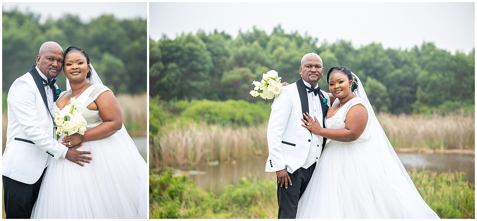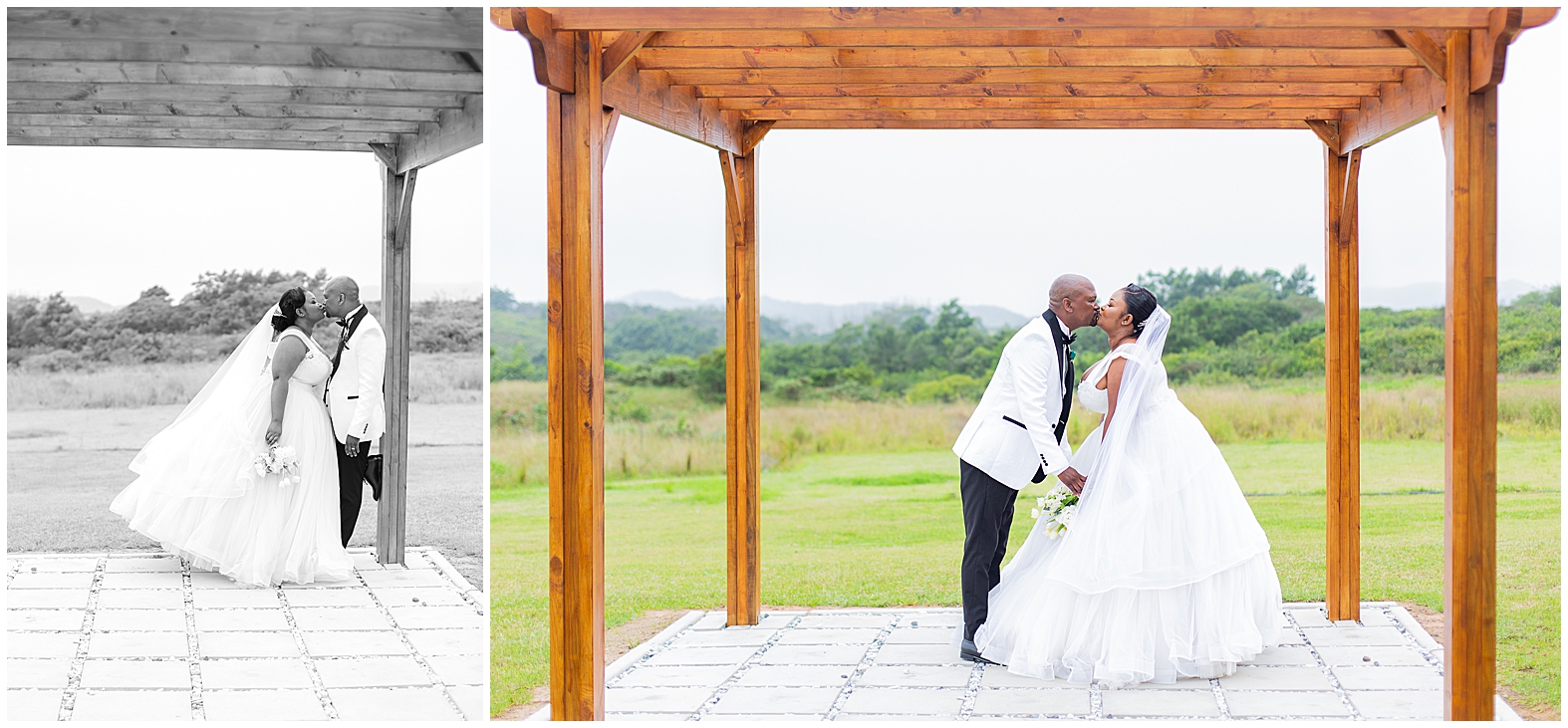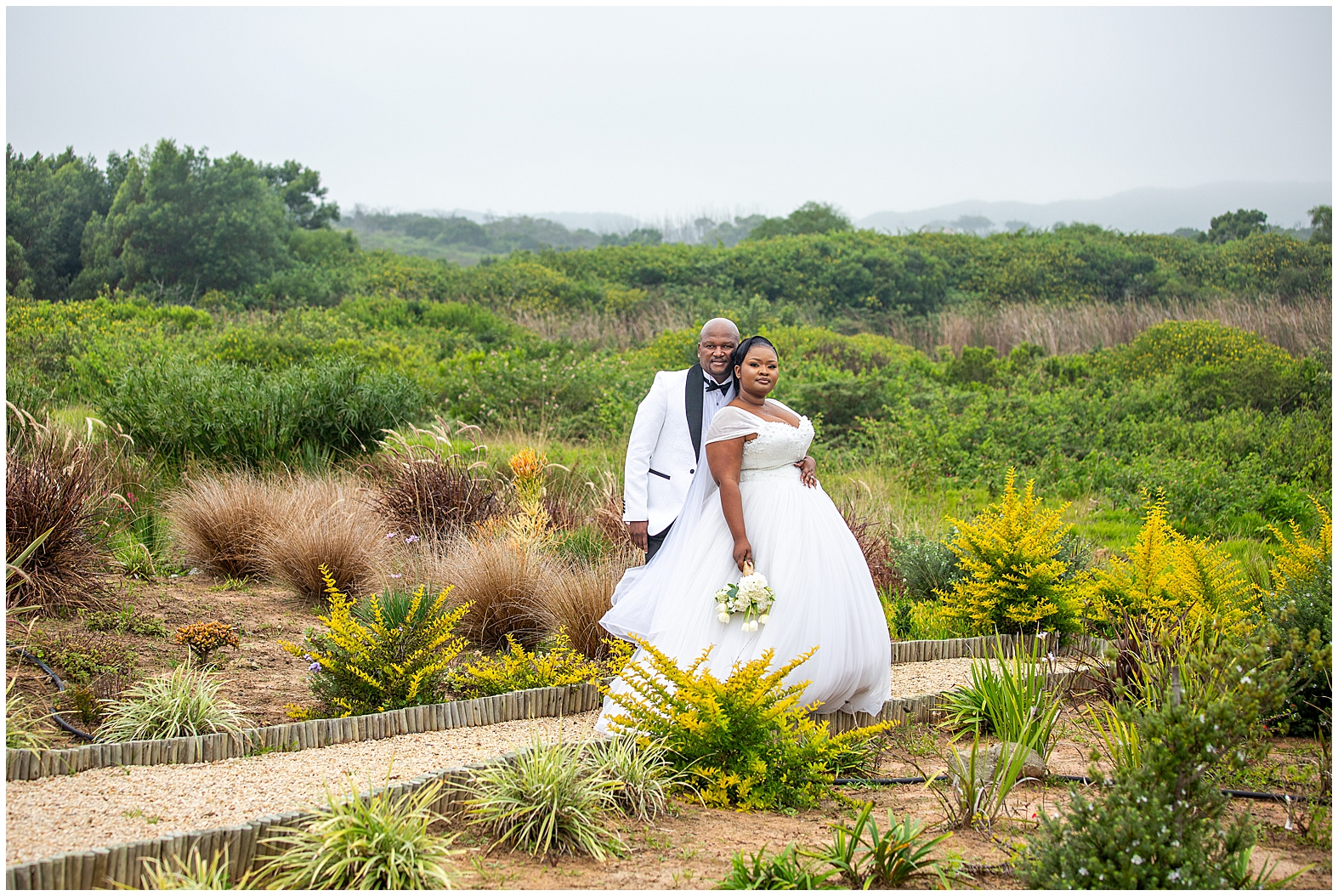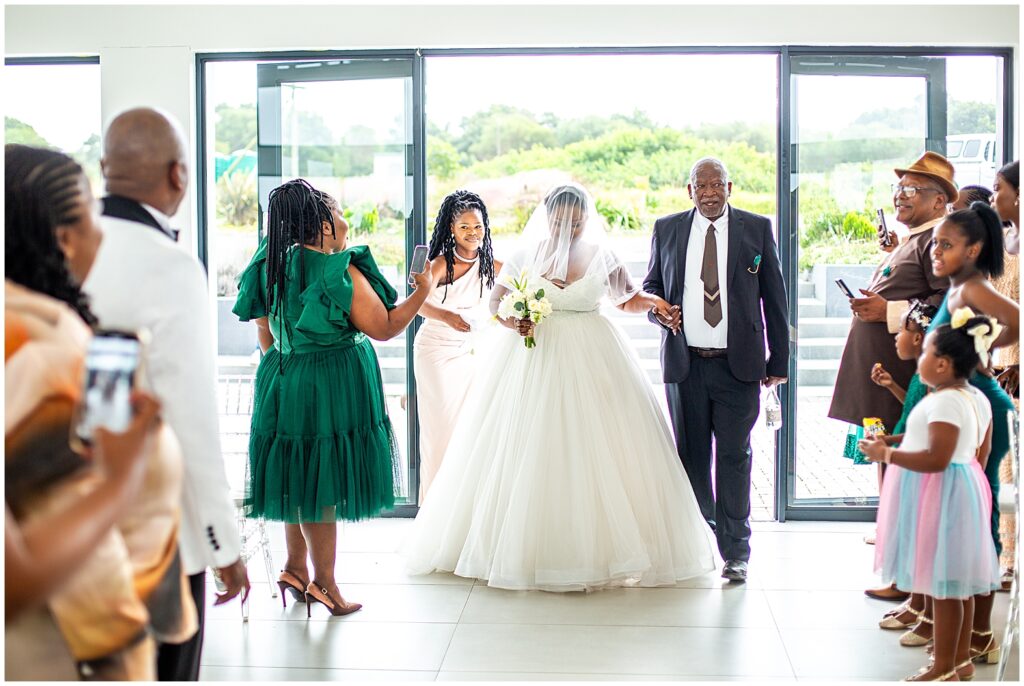 A luxurious matrimonial experience at The Amber. Comagu and Yonela tied the knot at The Amber Luxury Venue, situated on a farm near the coastal resort town of Kidd’s Beach in the Eastern Cape. The beautiful couple held their ceremony in the Infinity Chapel, which has an abundance of natural lighting and views of the surrounding indigenous landscape. There were so many endearing touches, especially the wedding vows. They were handwritten in bespoke vow cards, expressing their love and devotion to one another. As soon as the ceremony ended, it began to drizzle softly with God’s Blessings and the air turned into a crispy coolness. Nevertheless, the undeterred bridal couple embraced the weather conditions with enthusiasm. Furthermore, the pristine landscaped gardens, with tones of autumn hues, created a beautiful contrast against the grey skies. It was heart warming to witness Shasha and Yonela enjoying themselves in their bubble of love.