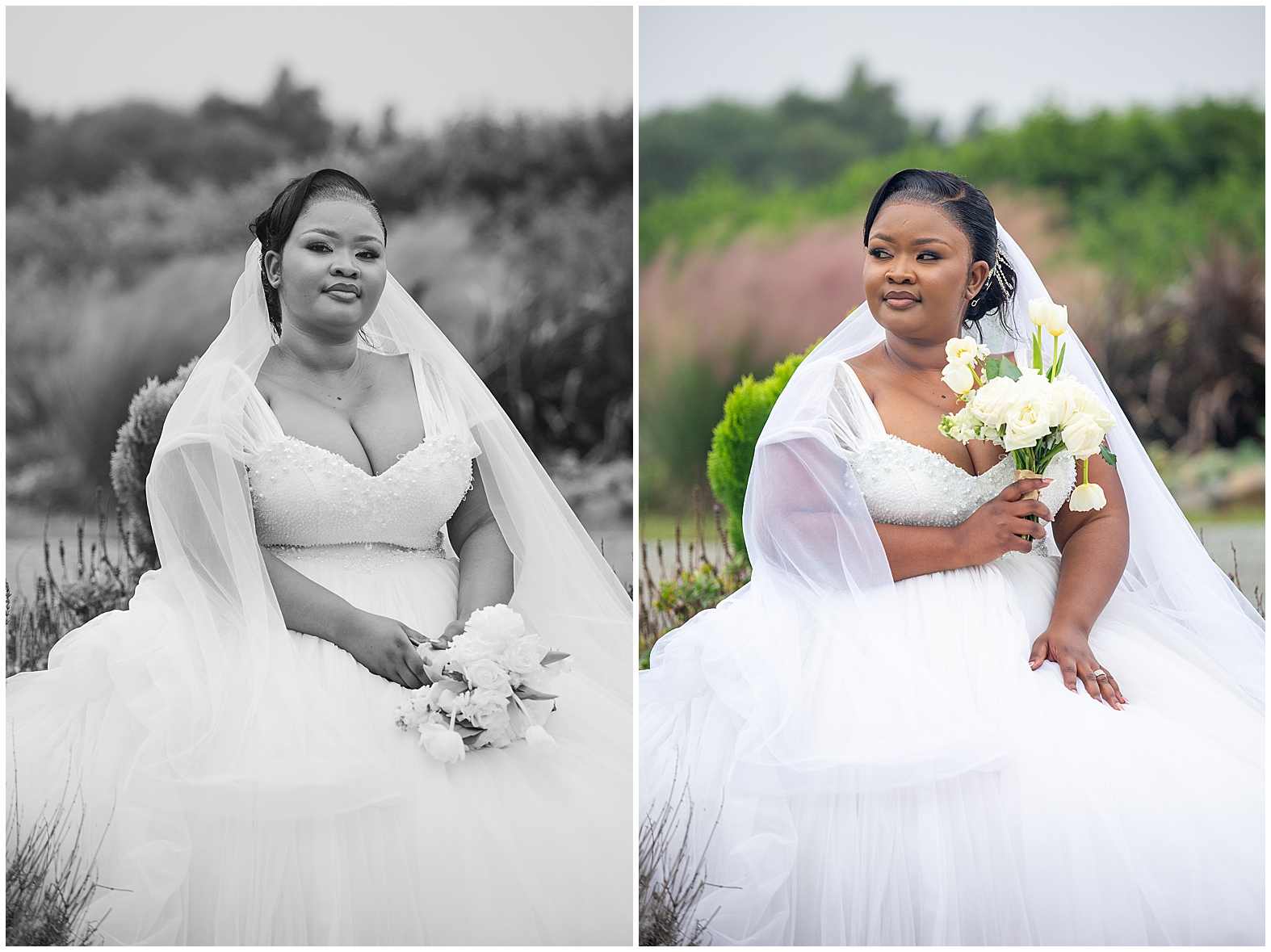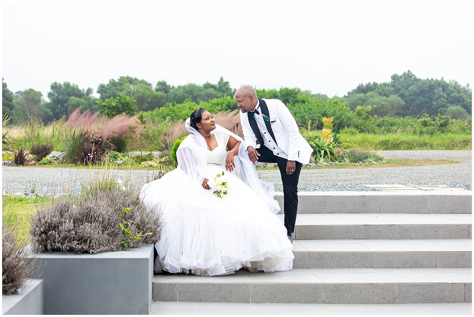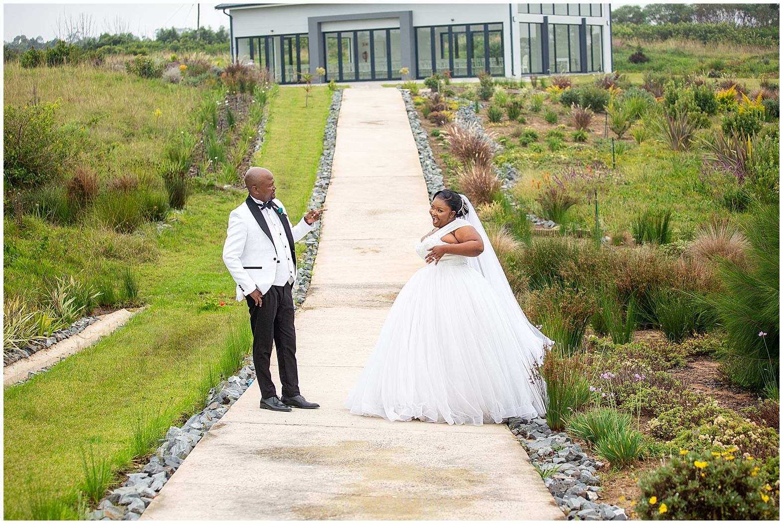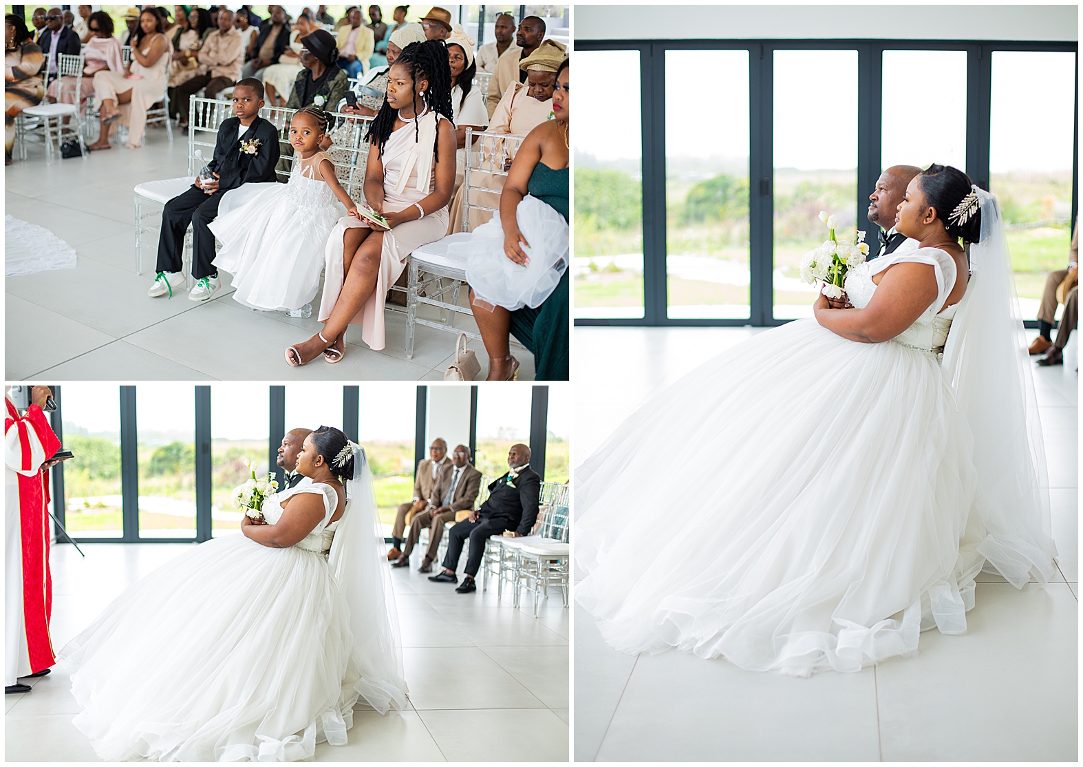 A luxurious matrimonial experience at The Amber. Comagu and Yonela tied the knot at The Amber Luxury Venue, situated on a farm near the coastal resort town of Kidd’s Beach in the Eastern Cape. The beautiful couple held their ceremony in the Infinity Chapel, which has an abundance of natural lighting and views of the surrounding indigenous landscape. There were so many endearing touches, especially the wedding vows. They were handwritten in bespoke vow cards, expressing their love and devotion to one another. As soon as the ceremony ended, it began to drizzle softly with God’s Blessings and the air turned into a crispy coolness. Nevertheless, the undeterred bridal couple embraced the weather conditions with enthusiasm. Furthermore, the pristine landscaped gardens, with tones of autumn hues, created a beautiful contrast against the grey skies. It was heart warming to witness Shasha and Yonela enjoying themselves in their bubble of love.