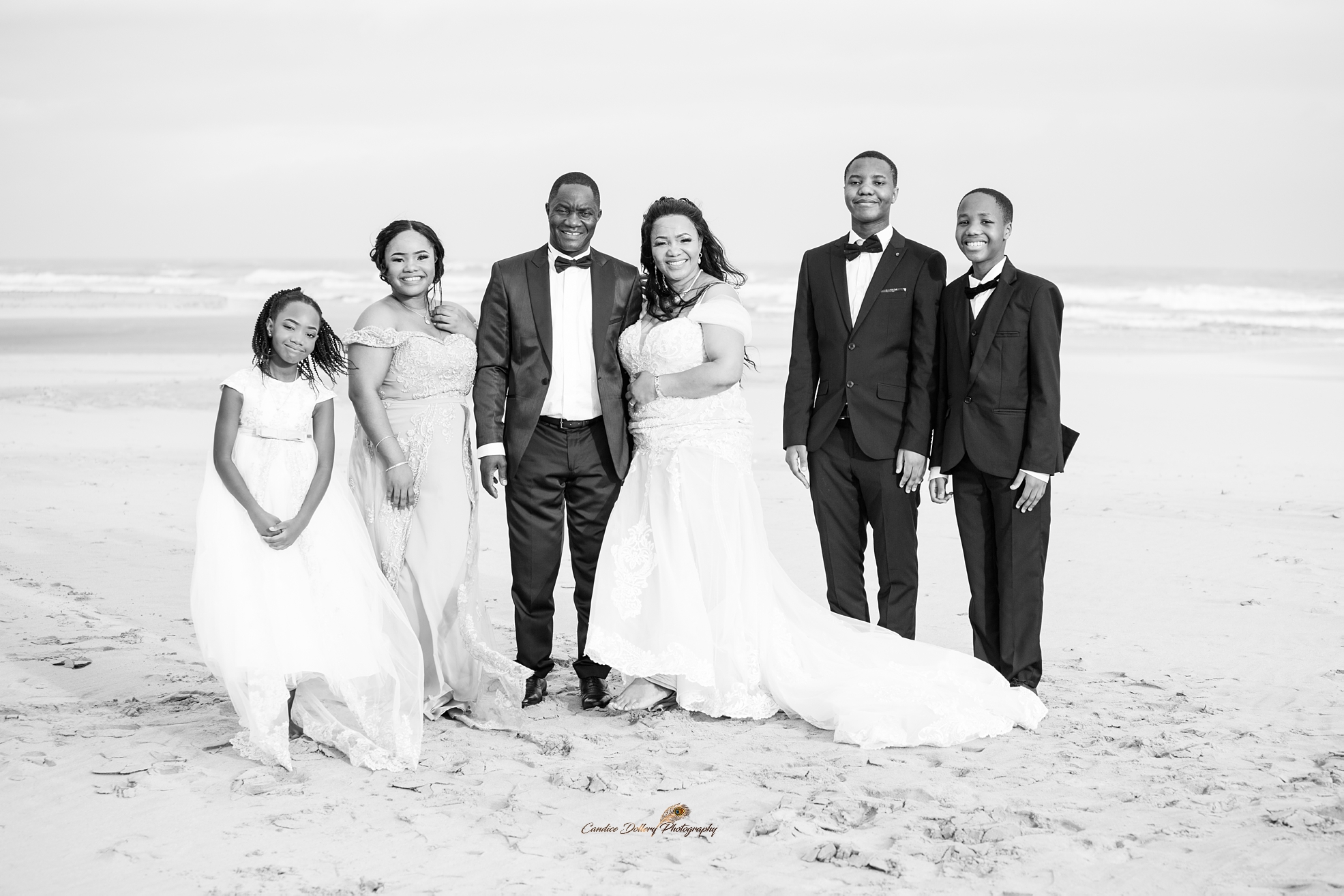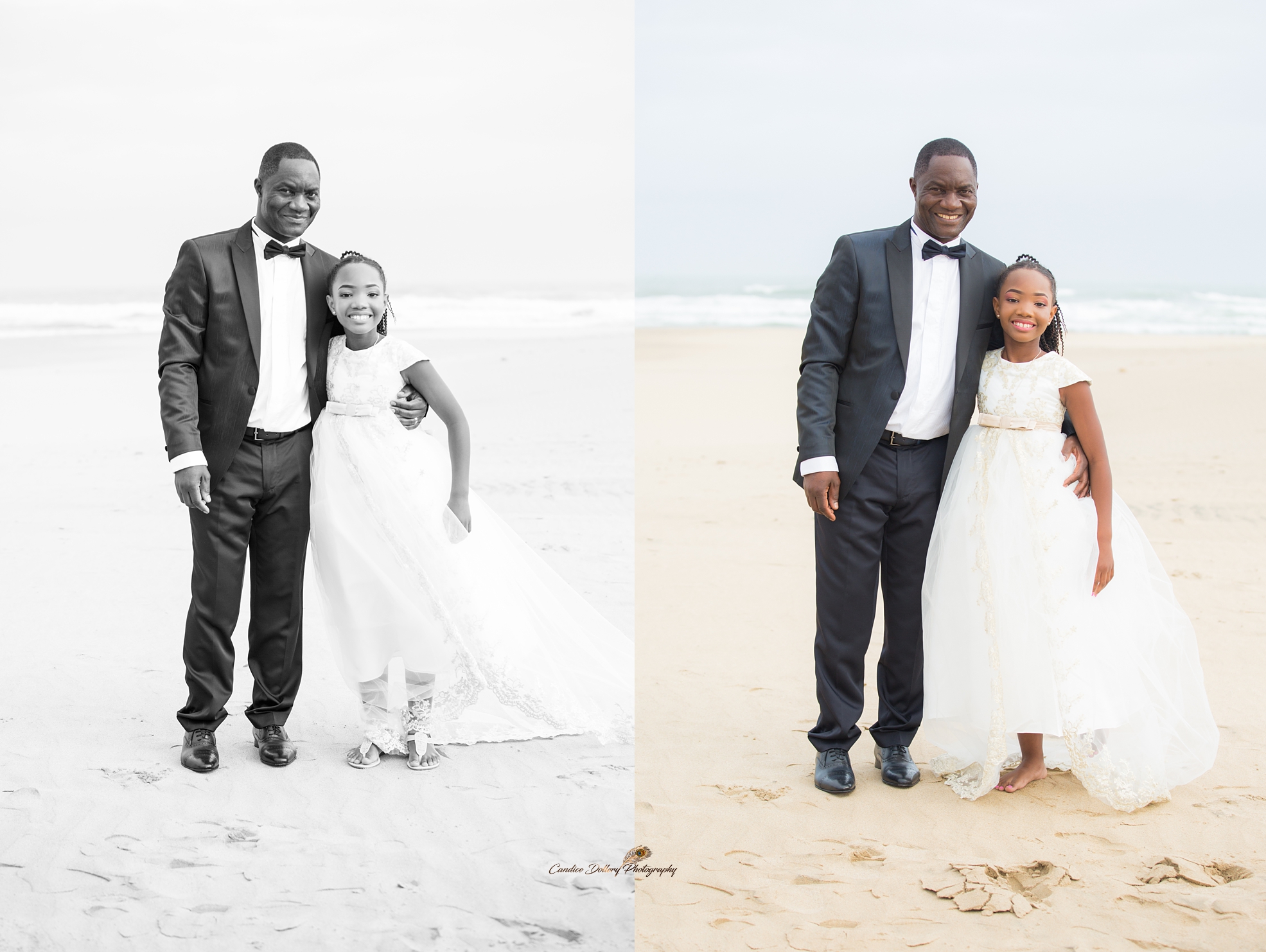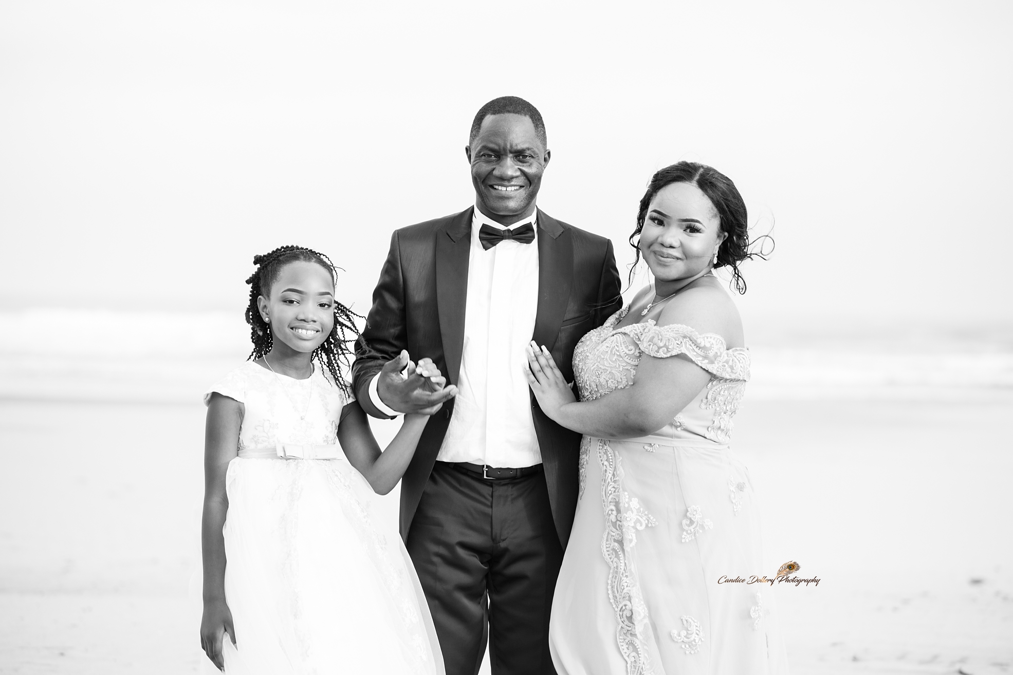 Pumla & Andy wanted a post wedding beach photoshoot with their gorgeous children present. They had their minds set on a late afternoon session at Bonza Bay in East London, Eastern Cape. It was a little breezy, but we weren’t deterred at all. The sky and clouds looked dramatic with dark and light grey hues. The sun peeped through occasionally, casting a soft haloed light behind them. As always, I thoroughly enjoyed my time with this truly amazing and loving family.